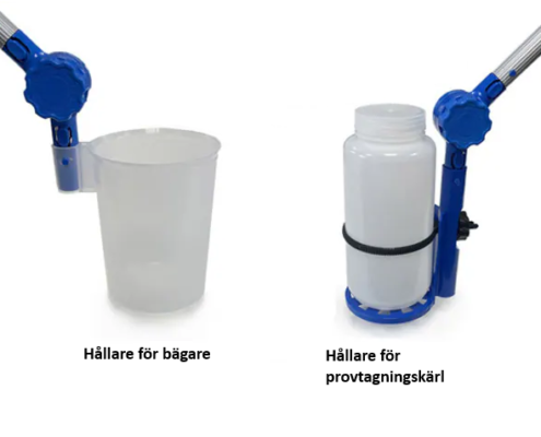 - Vinkelbägare. Tillåter att provtagningsbägaren ställs in i olika vinklar för att förenkla provtagningen och minimera spillet av vatten.